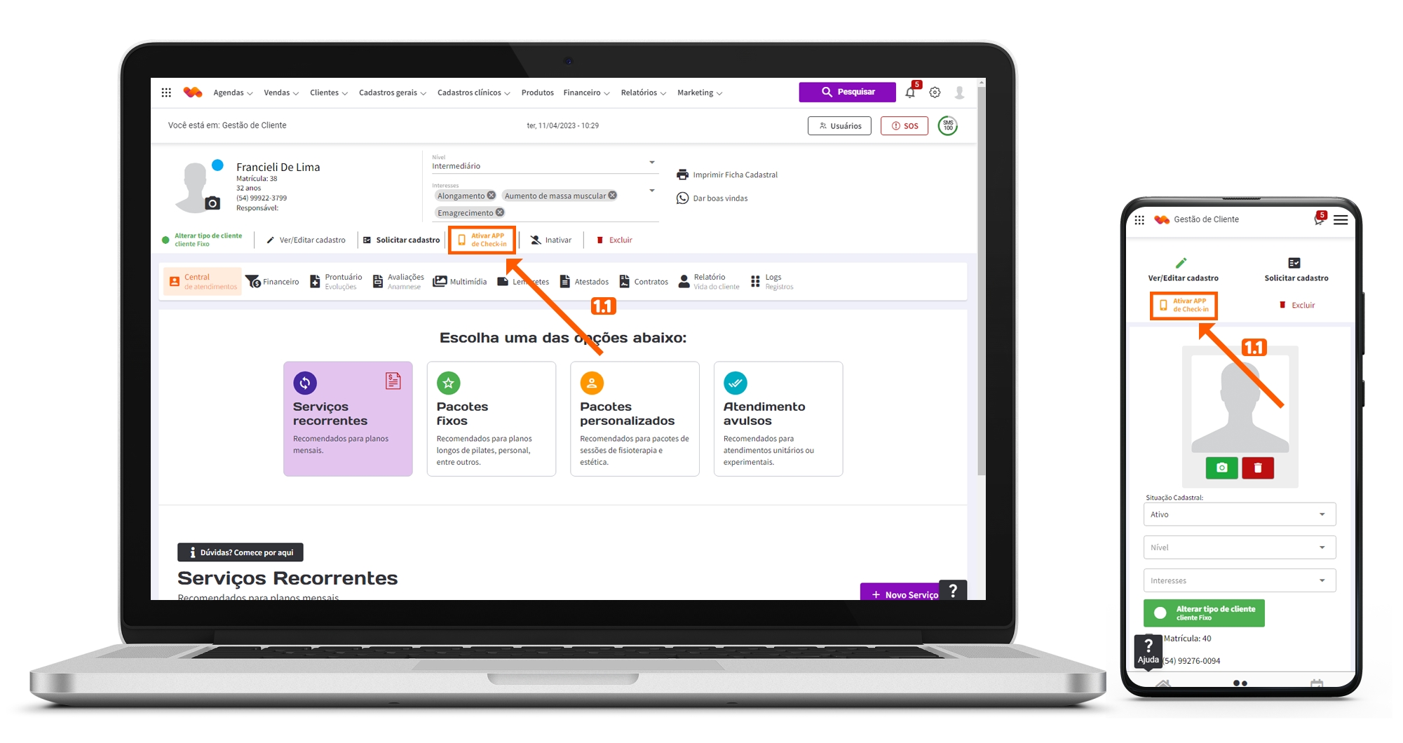 Acessar o cadastro do seu cliente no sistema e clicar na guia Ativar APP de Check-in;