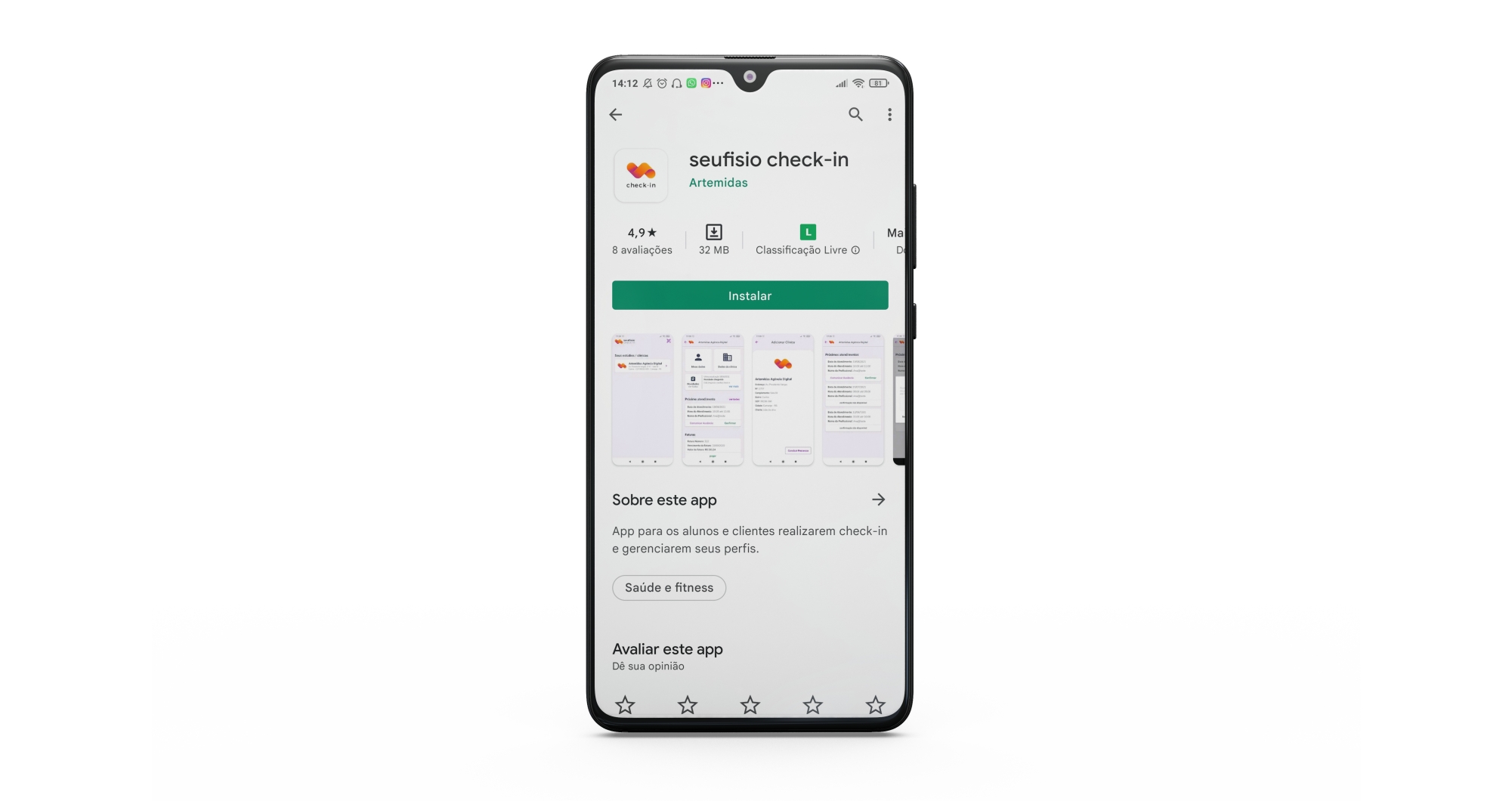 Peça para que o seu cliente baixe o aplicativo seufisio check-in em seu celular. Disponível para Android e IOS na loja de aplicativos.