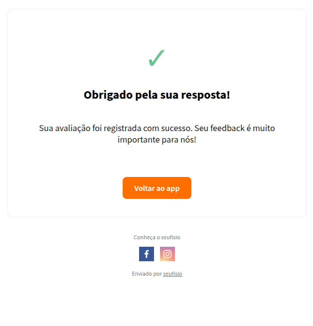**Após responder pesquisa de satisfação tela de Agradecimento:**