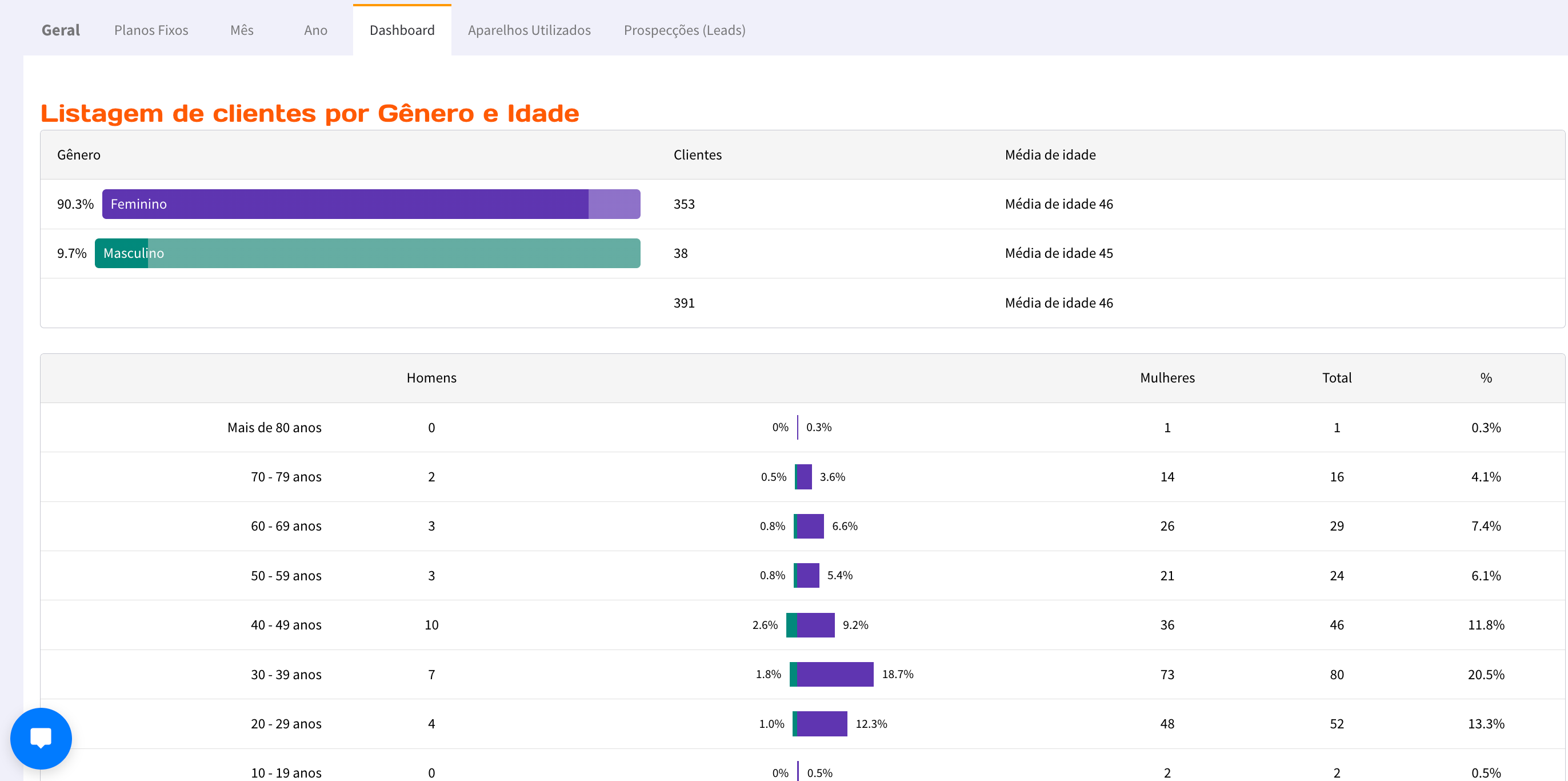 Essas informações ajudam na compreensão do **perfil do público atendido pela clínica**.